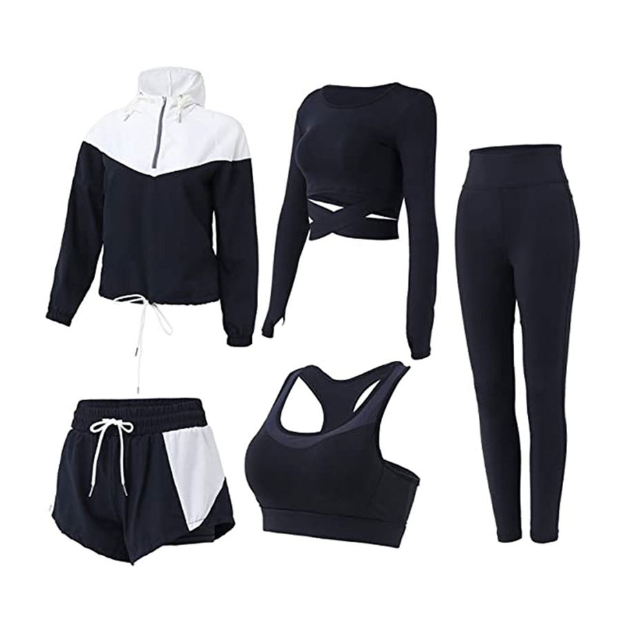 Ensembles de Sport 5 Pièces pour Femmes, Tenues de Yoga et de Fitness Décontractées