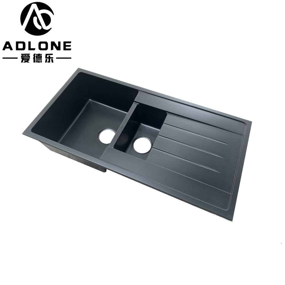 Poste de travail Double bol Quartz noir couleur cuisine Quartz évier cuisine éviers granit avec égouttoir