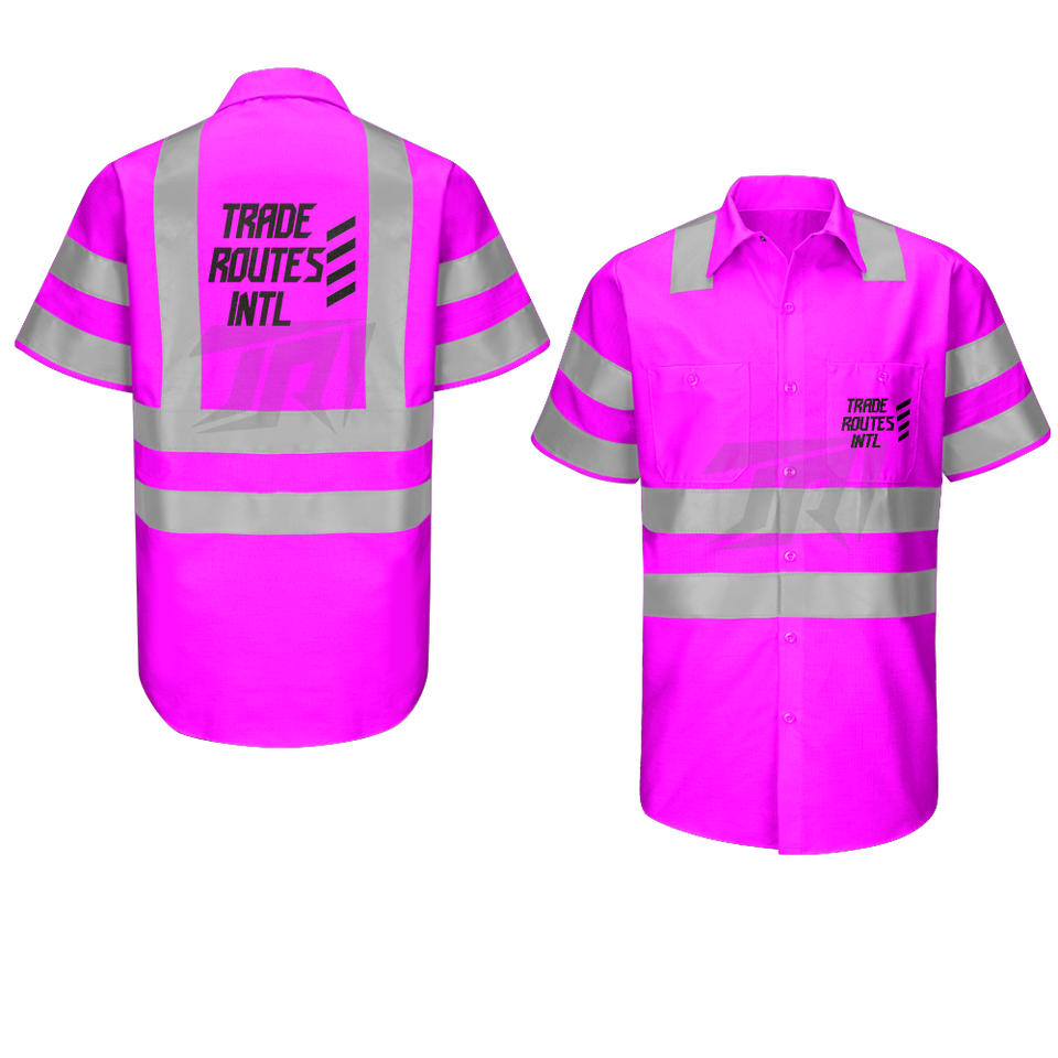 Haute visibilité ANSI classe 1 Logo confortable imperméable polyester ensemble bavoir boutonné col rond vêtements de travail de sécurité réfléchissants
