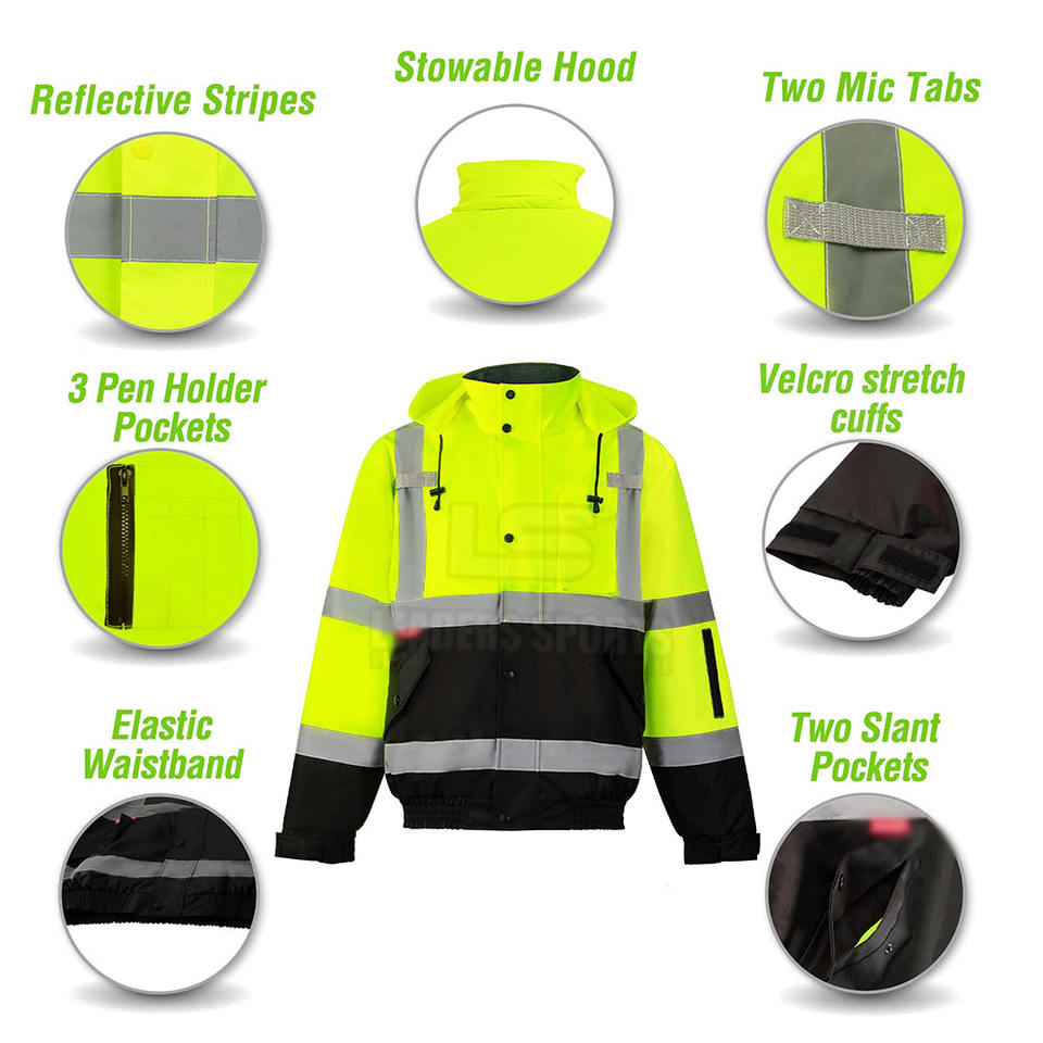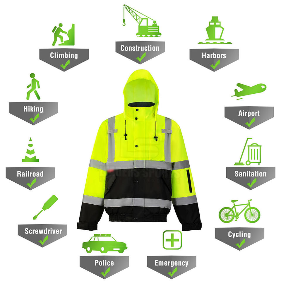 Veste de sécurité haute visibilité imperméable et respirante en polyester pour hommes, vêtements de travail d'hiver avec bande réfléchissante et certification CE
