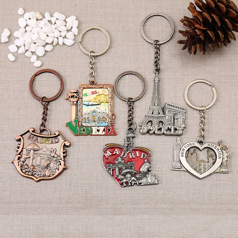 Attractions mondiales porte-clés en métal Rome dubaï Paris Venezia Madrid visite de la ville étrangère Souvenir artisanat en métal porte-clés