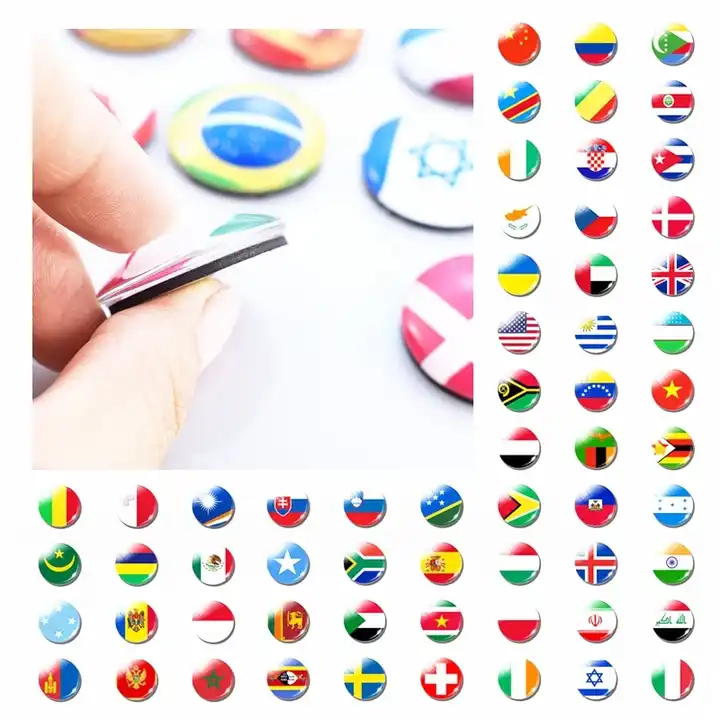 Aimants de réfrigérateur de voyage avec drapeaux des pays du monde, souvenirs, 30MM/40MM/50MM/60MM, dôme en verre rond, autocollants magnétiques pour réfrigérateur
