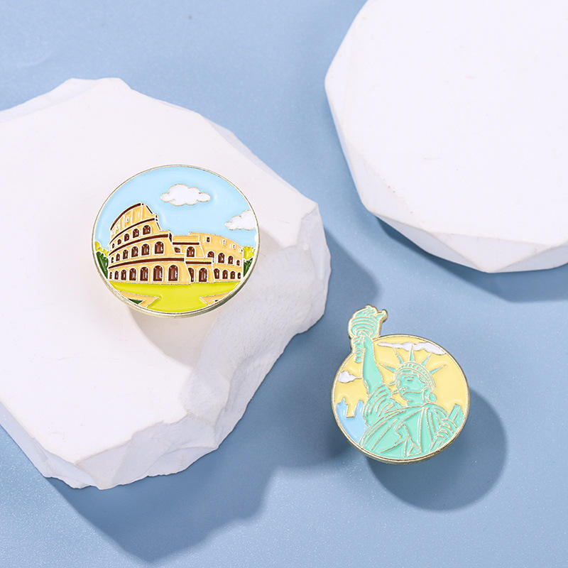 Broches en métal de bâtiments célèbres du monde entier, Big Ben Londres, Tour Eiffel Paris, émail doux doré, badges de revers, broches de chapeau