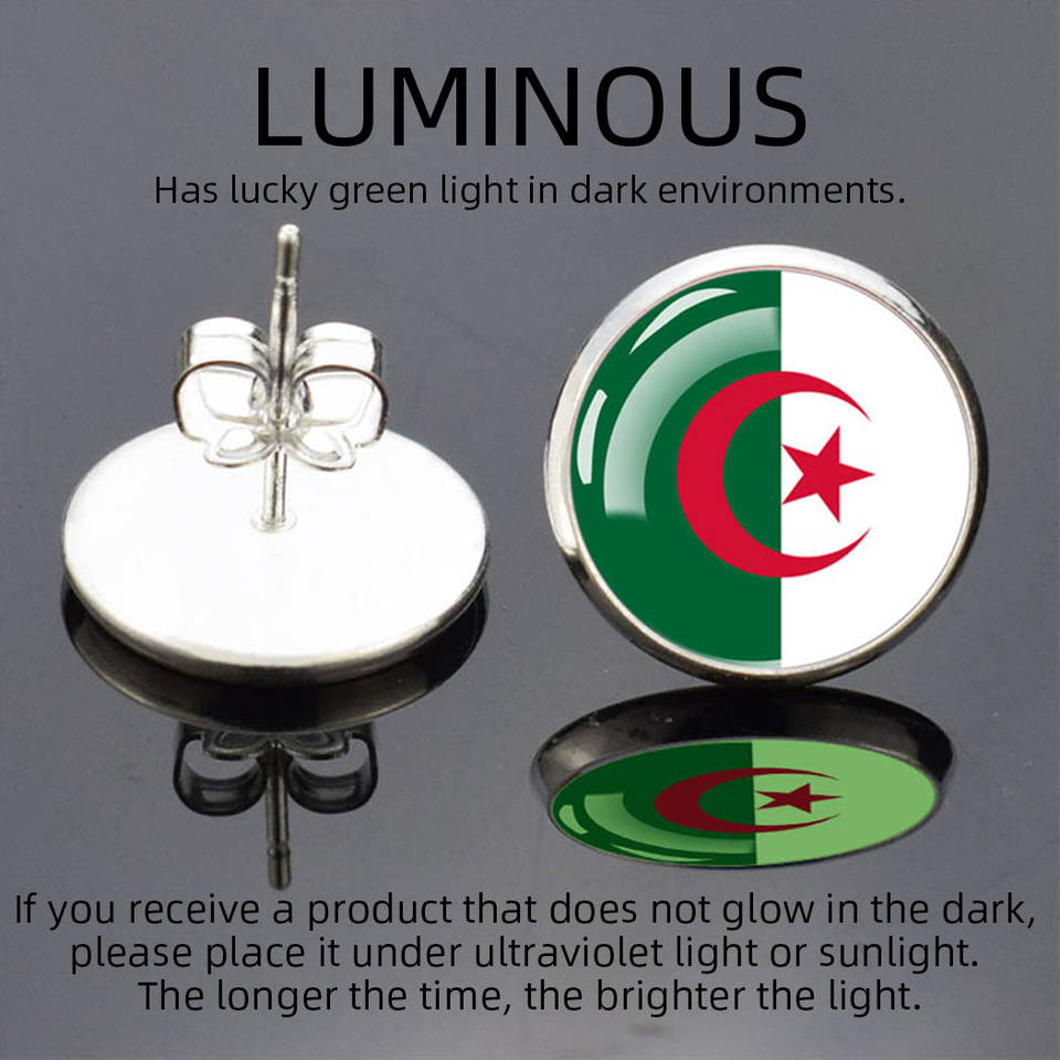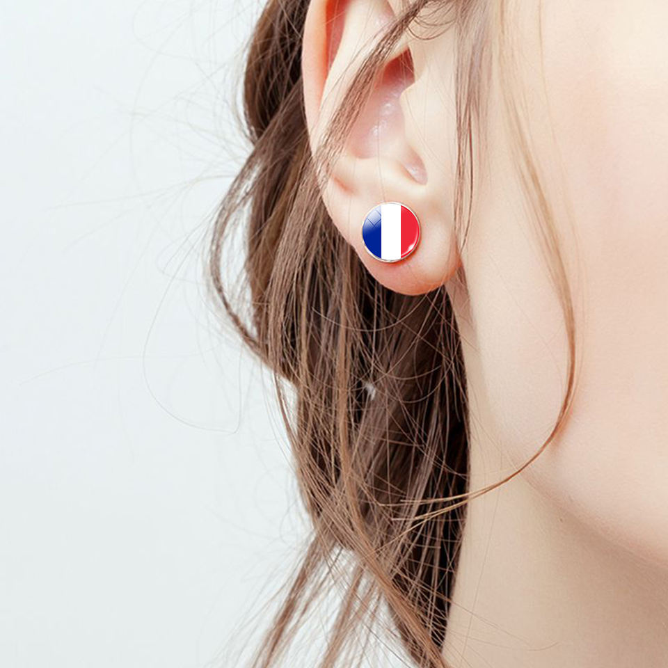 World Flag Stud Earrings Women Men Luminous Round Dome Cabochon Stainless Steel Mexico Peru Canada American Mini Ear Studs