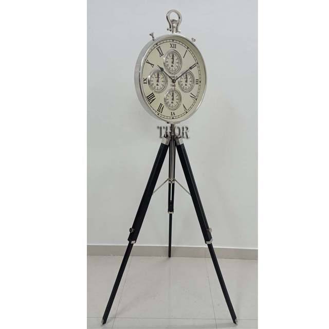 Horloge mondiale avec trépied, horloge avec grand chiffre romain debout, support de sol, décoration pour la maison, l'hôtel, le bureau