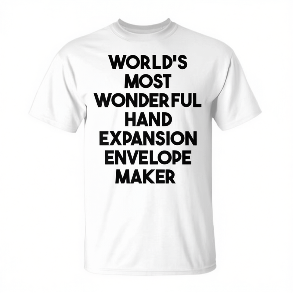 T-shirt promotionnel unisexe pour adulte à manches courtes et col rond, avec motif 'Worlds Most Wonderful Hand Expansion Envelope Maker'
