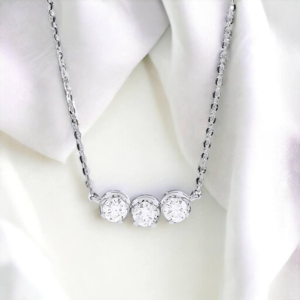 Dans le monde entier 1.00Ct Lab Grown Diamond 17 Pouces Trilogy Collier Pour Les Femmes Fabriqué en Argent Sterling Solution de Bijoux Abordable