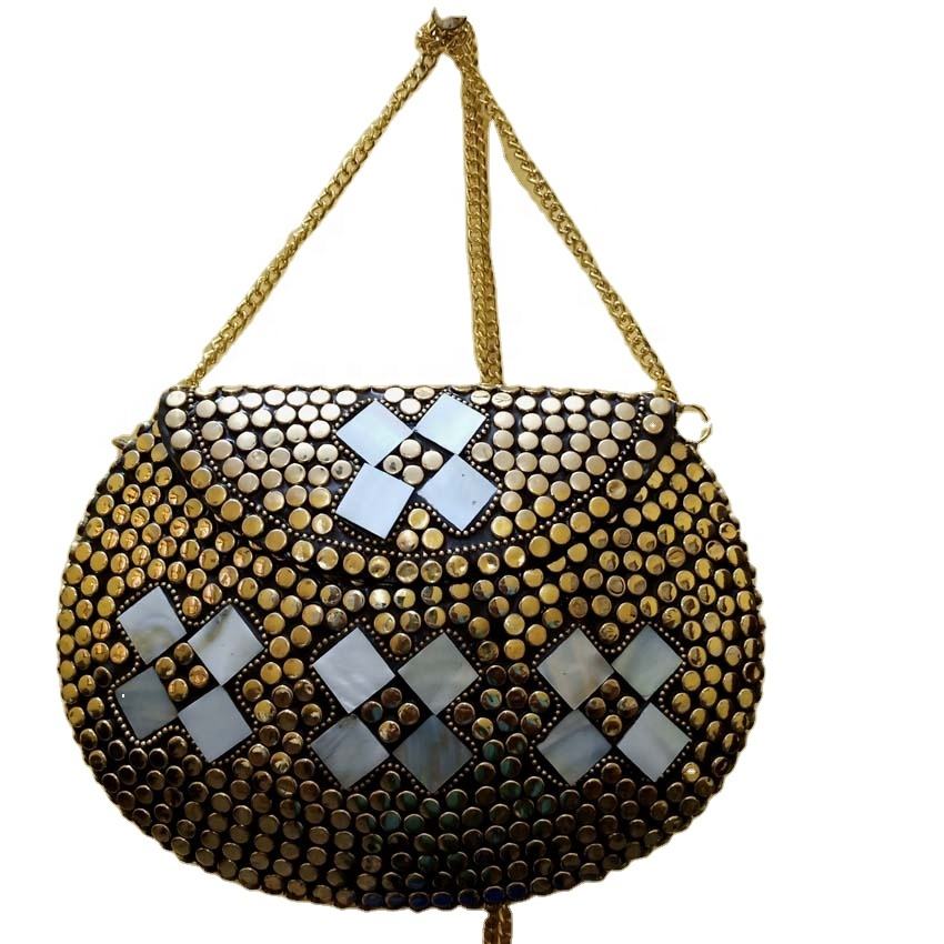 Exportation dans le monde entier mode sacs à main en métal pour les filles avec des perles de coquille travail pour les vêtements de fête fabriqués par des GC-BG-102 indiens