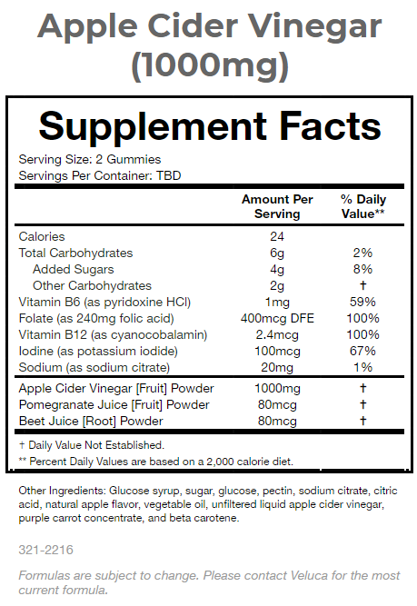 Nom du produit:Gommes au vinaigre de cidre de pomme (1000 mg) (pomme 4 g)