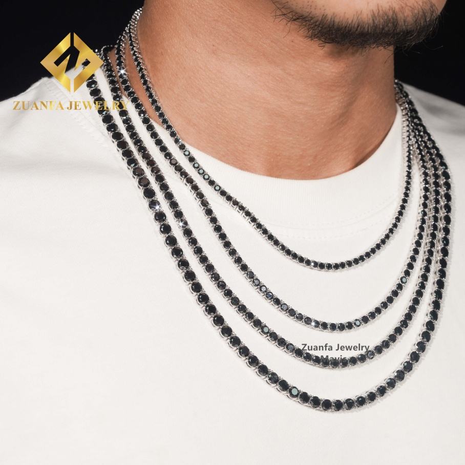 Collier Tennis Hip Hop Serti de Pierres, Argent Sterling 925, 3MM 3.5MM 4MM 5MM, Moissanite Noire VVS, Chaîne Tennis, Expédition Mondiale