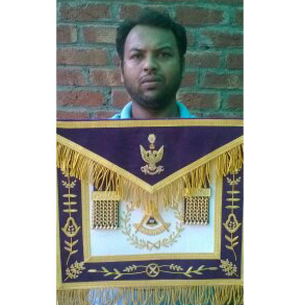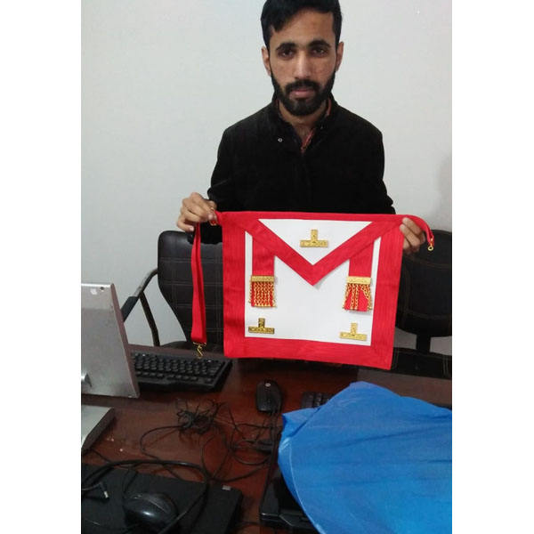 Vénérable maître écossais Rite tablier rouge moiré avec onglets latéraux Conseil maçonnique Royal & Select Master Member tablier faux cuir