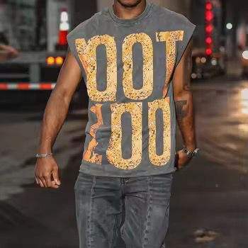 Débardeur en polyester tissé pour homme, style streetwear décontracté, effet vieilli, respirant, tie-dye, séchage rapide, pour l'extérieur