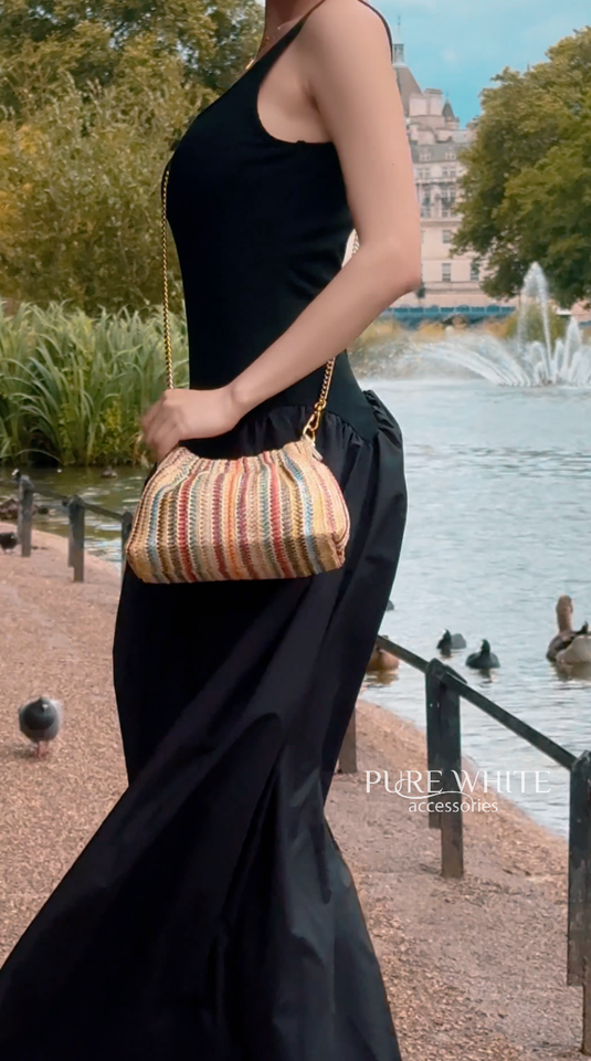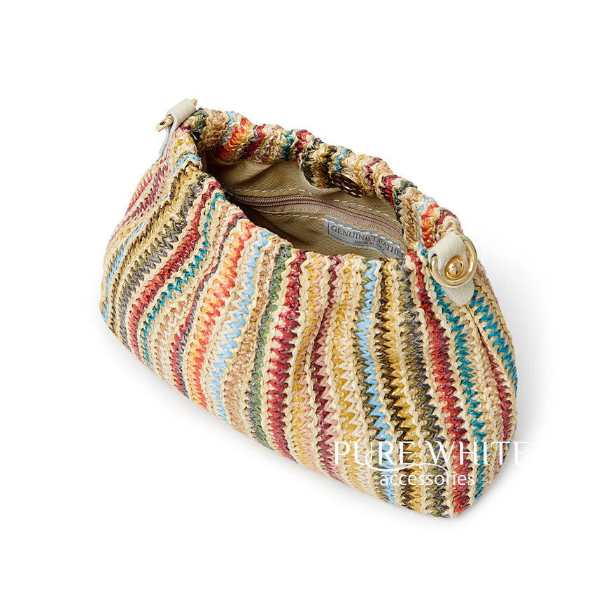 Sac en raphia tissé avec des rayures colorées - Fabriqué à la main en Italie - PS596