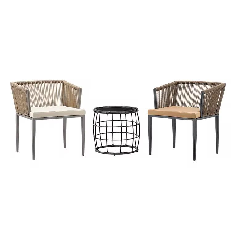 Table et chaises d'extérieur en rotin tressé, chaise en rotin pour jardin de villa, ensemble de loisirs avec petite table ronde imperméable et résistante au soleil pour l'extérieur