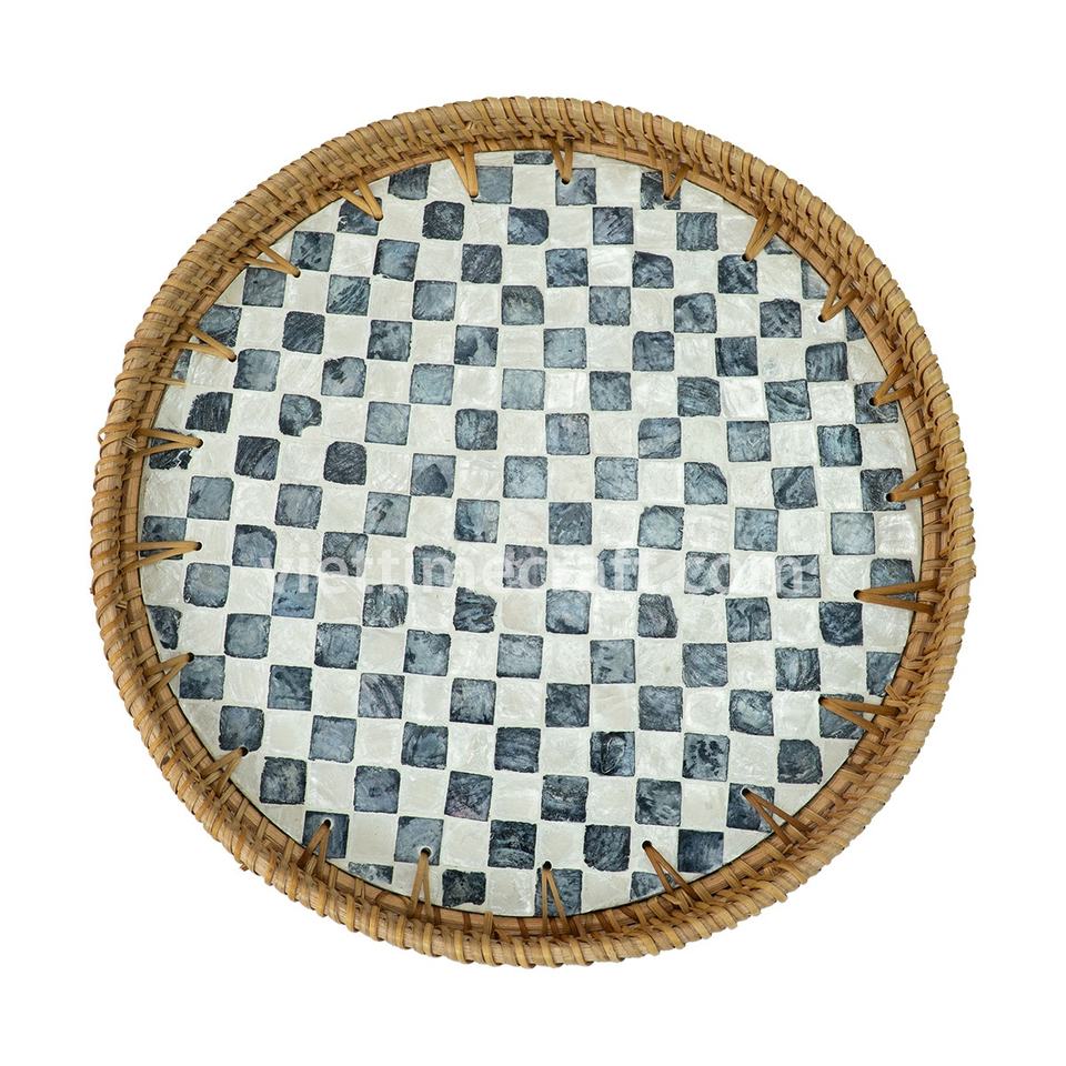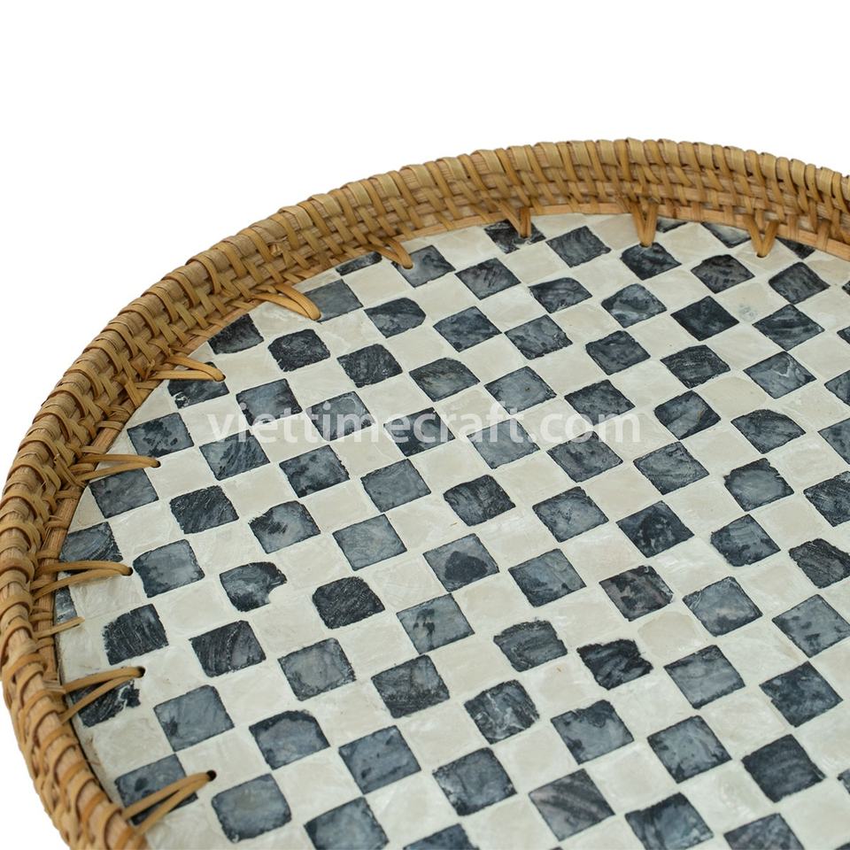 Plateau de service en rotin tissé avec intérieur laqué, design rayé décoratif, intérieur laqué avec motifs rayés Vietnam