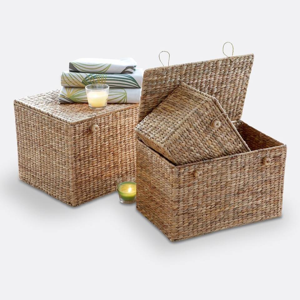 Ensemble de boîtes de rangement tissées, boîtes décoratives en jacinthe d'eau, conteneur pour l'organisation de la maison