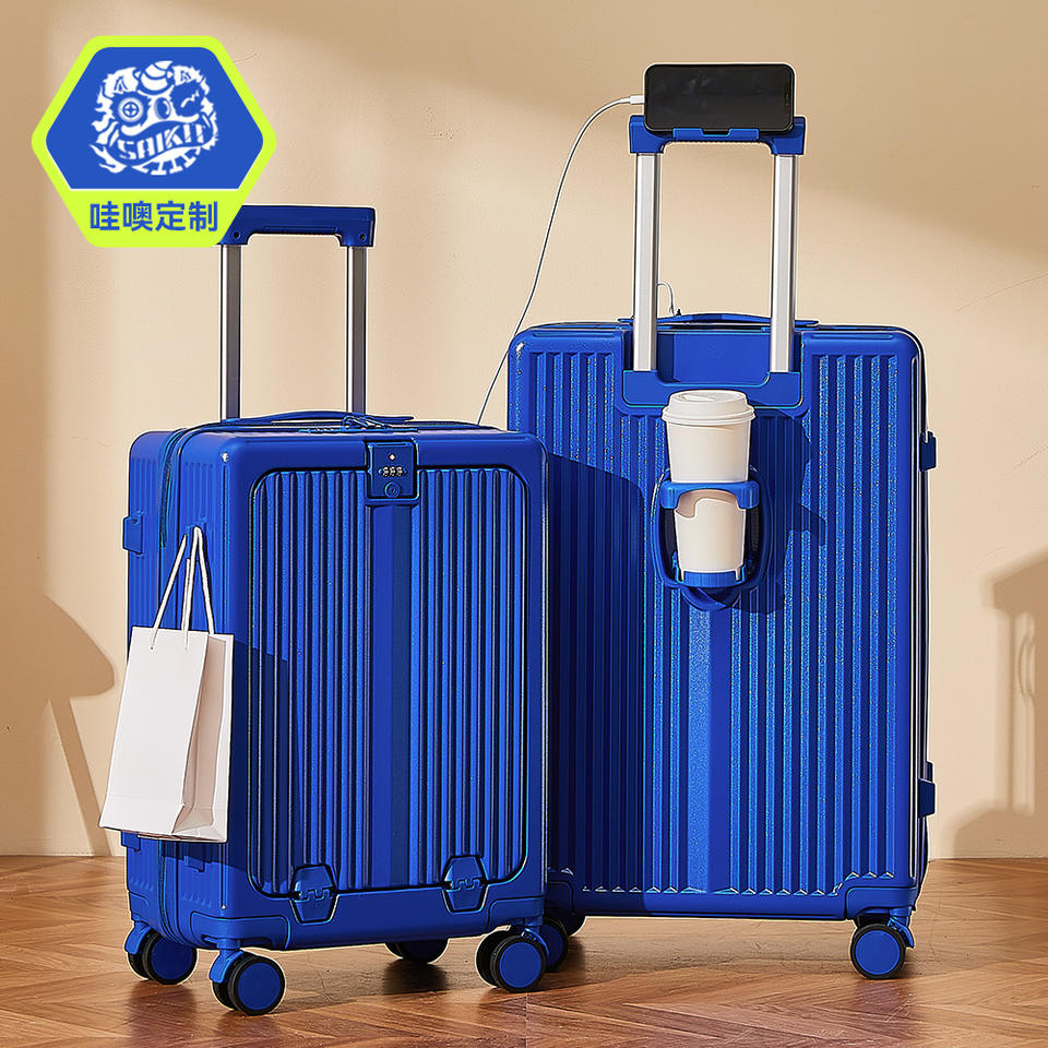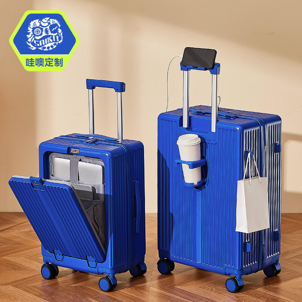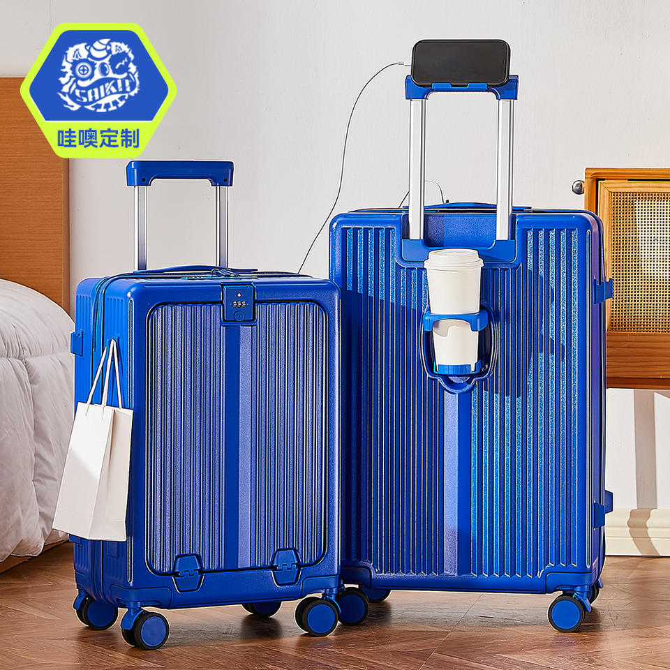 Valises personnalisées Wow, 20 et 26 pouces, bagages à roulettes avec porte-gobelet, port de charge USB, design rayé, sac de voyage unisexe