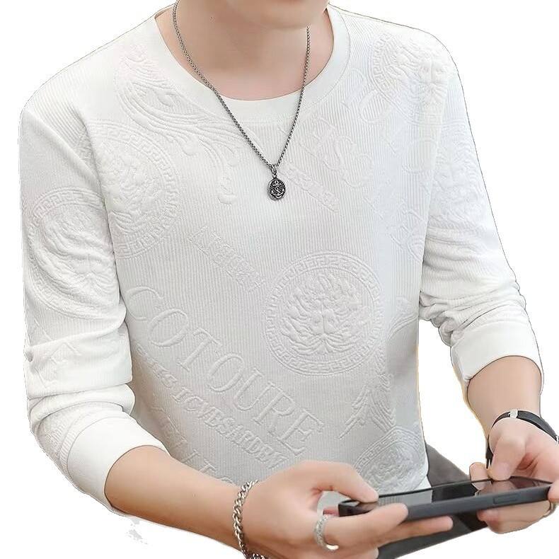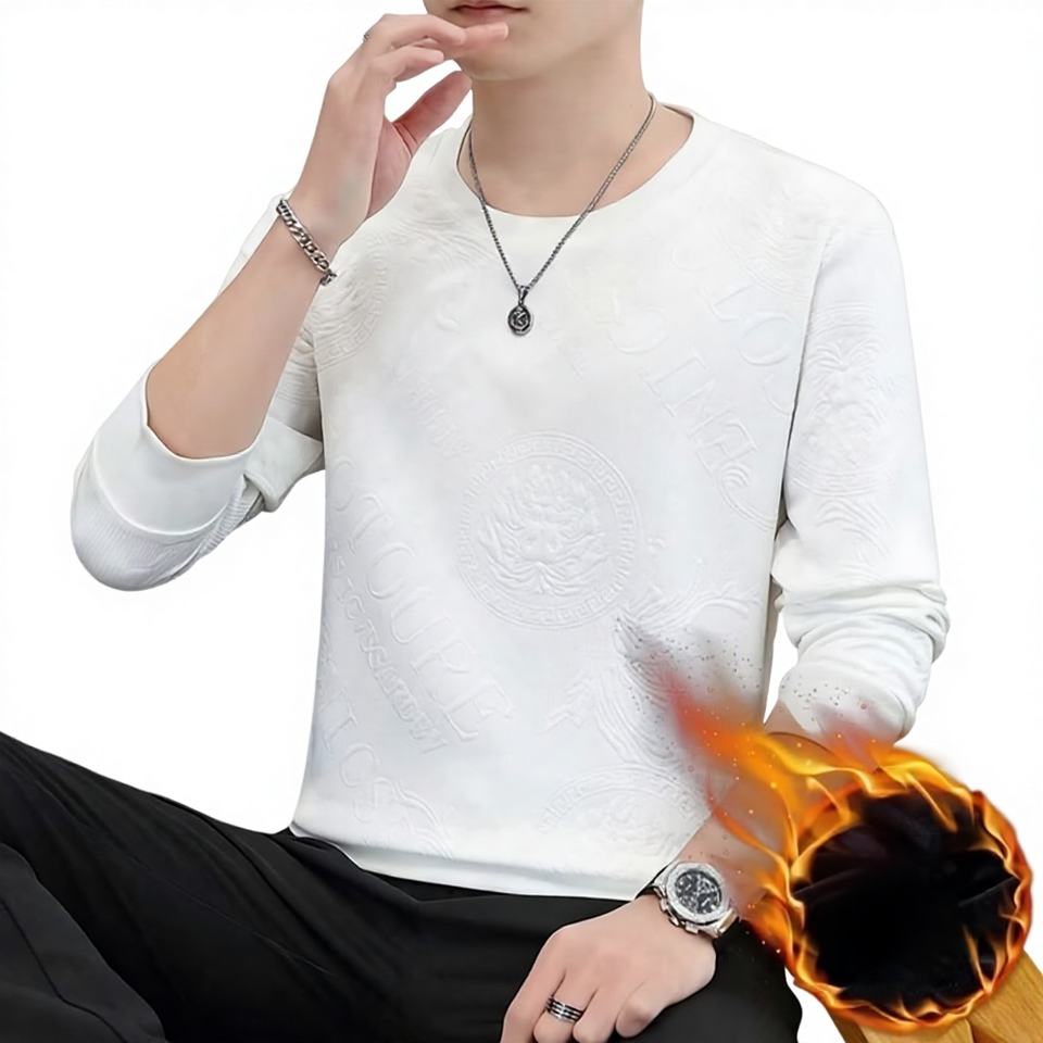 Pull-over classique en viscose doublé polaire pour homme, col jacquard, coupe ample, couleur unie, collection automne-hiver, style décontracté junior