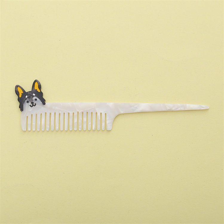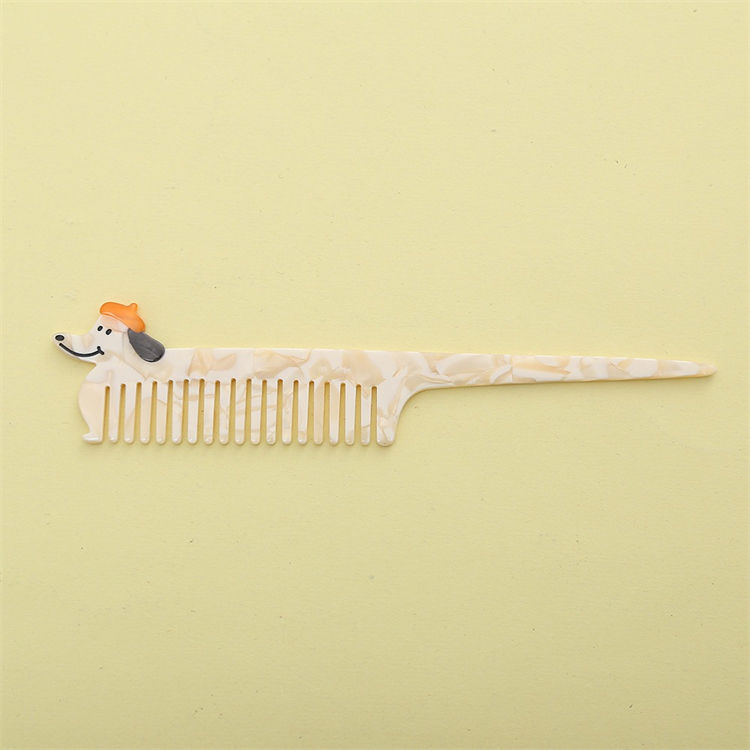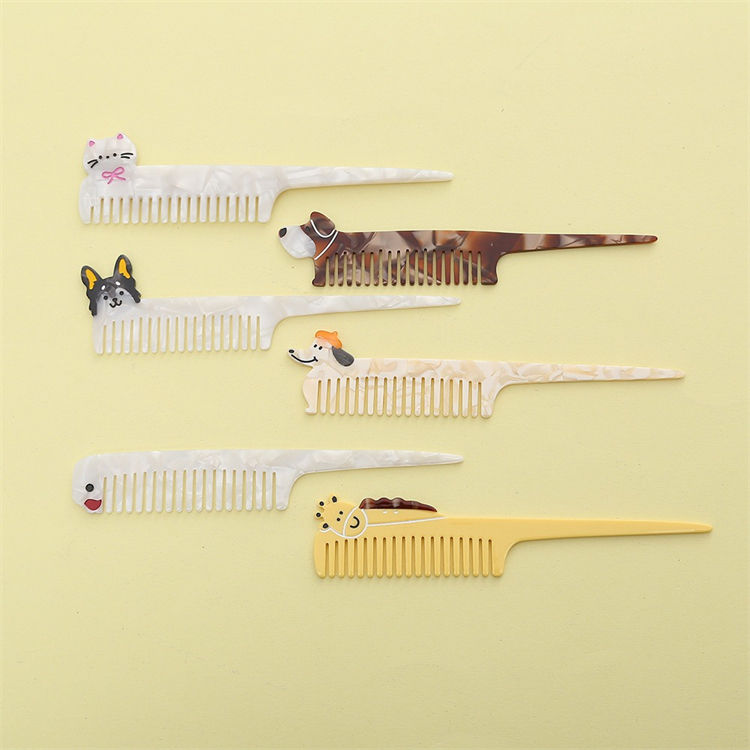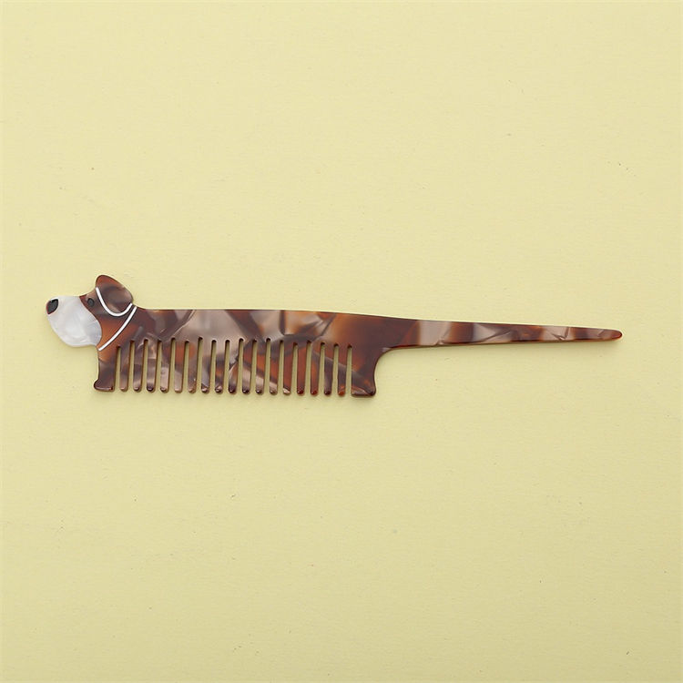 Wow Sheila nouveau Style exquis femme peigne à cheveux mince couleur marbre chiot chat girafe forme animale Long acétate peigne à cheveux