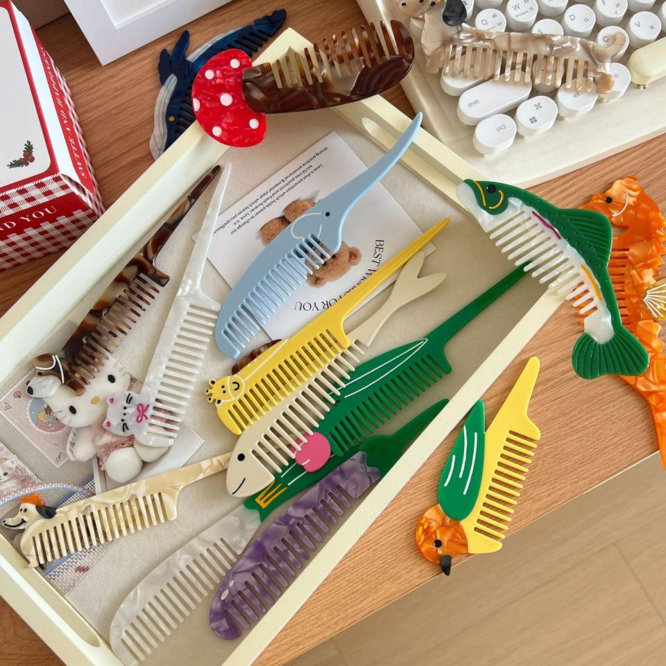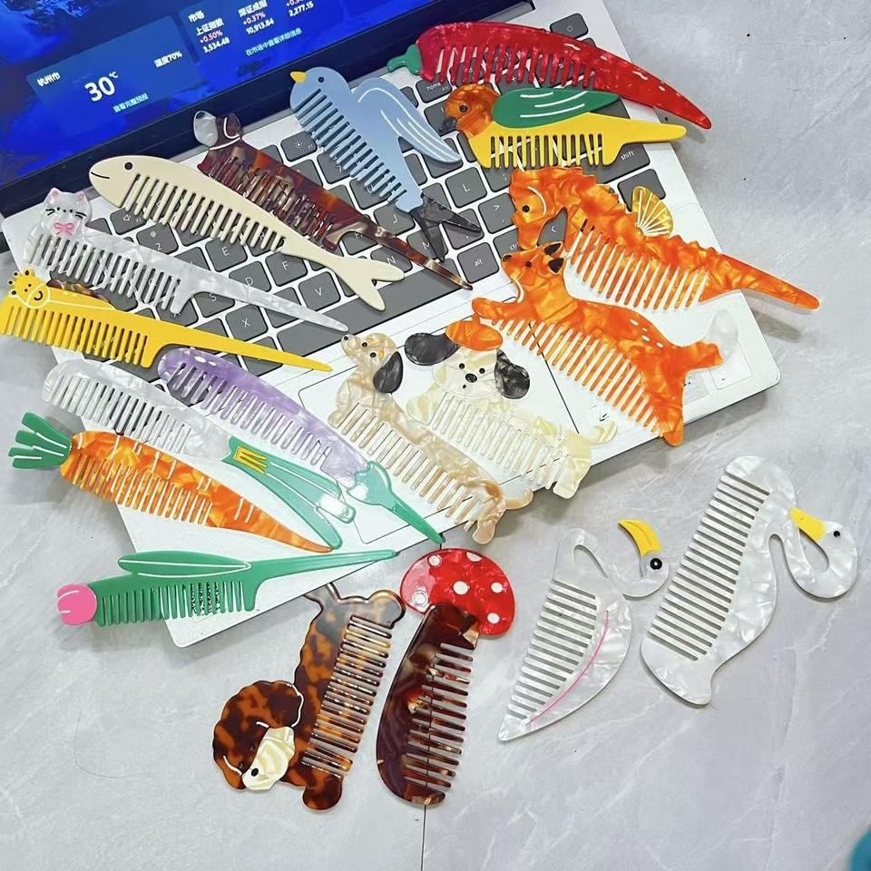 Wow Sheila nouveau Style exquis femme peigne à cheveux mince couleur marbre chiot chat girafe forme animale Long acétate peigne à cheveux