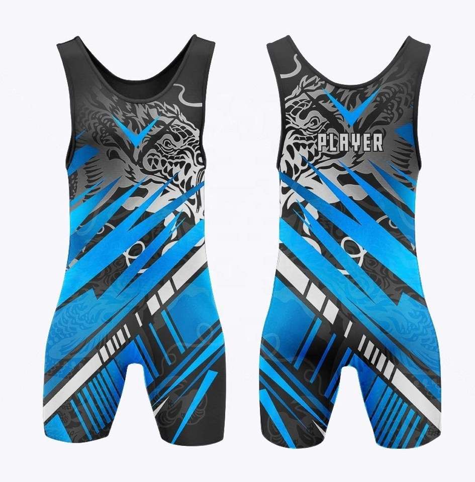 Combinaison de lutte personnalisée à prix abordable, séchage rapide, classique, légère, en tissu 100 % polyester, impression par décharge, logo avant, durable