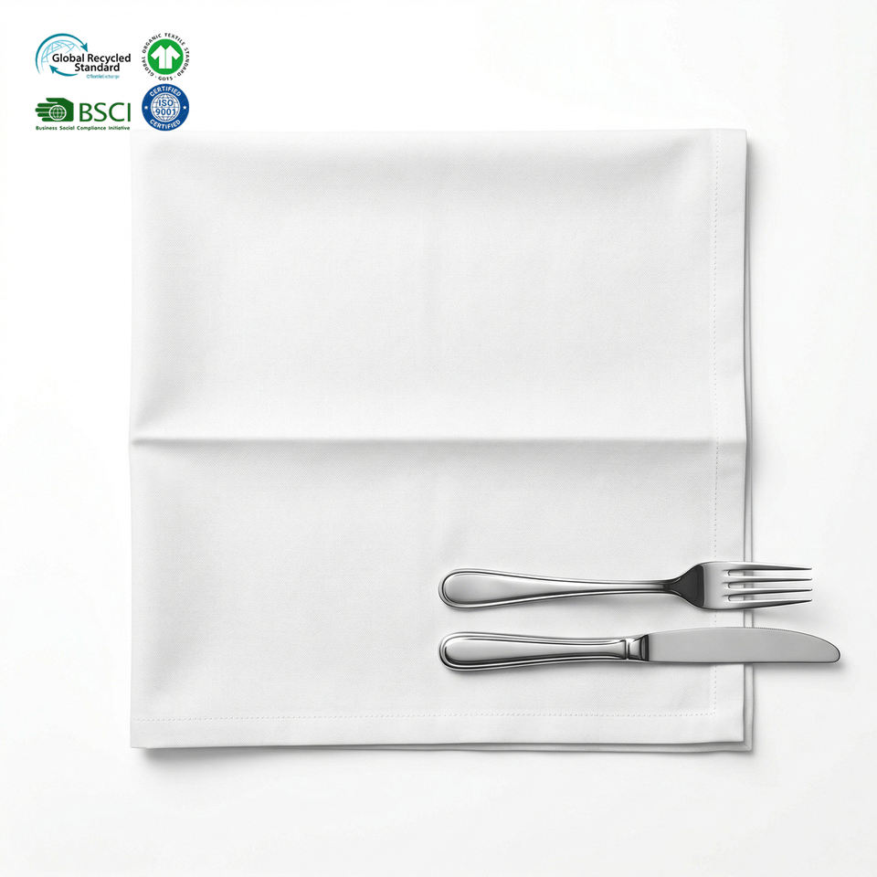 Serviettes d'hôtel blanches anti-plis 20x20 pouces en polycoton écologique, tailles personnalisables, bords ourlés, pour la restauration et les événements