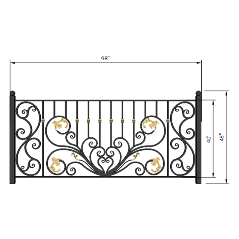 Rampe de balcon en fer forgé, rampe décorative extérieure personnalisée, fer forgé à la main, design moderne, finition durable avec revêtement en poudre