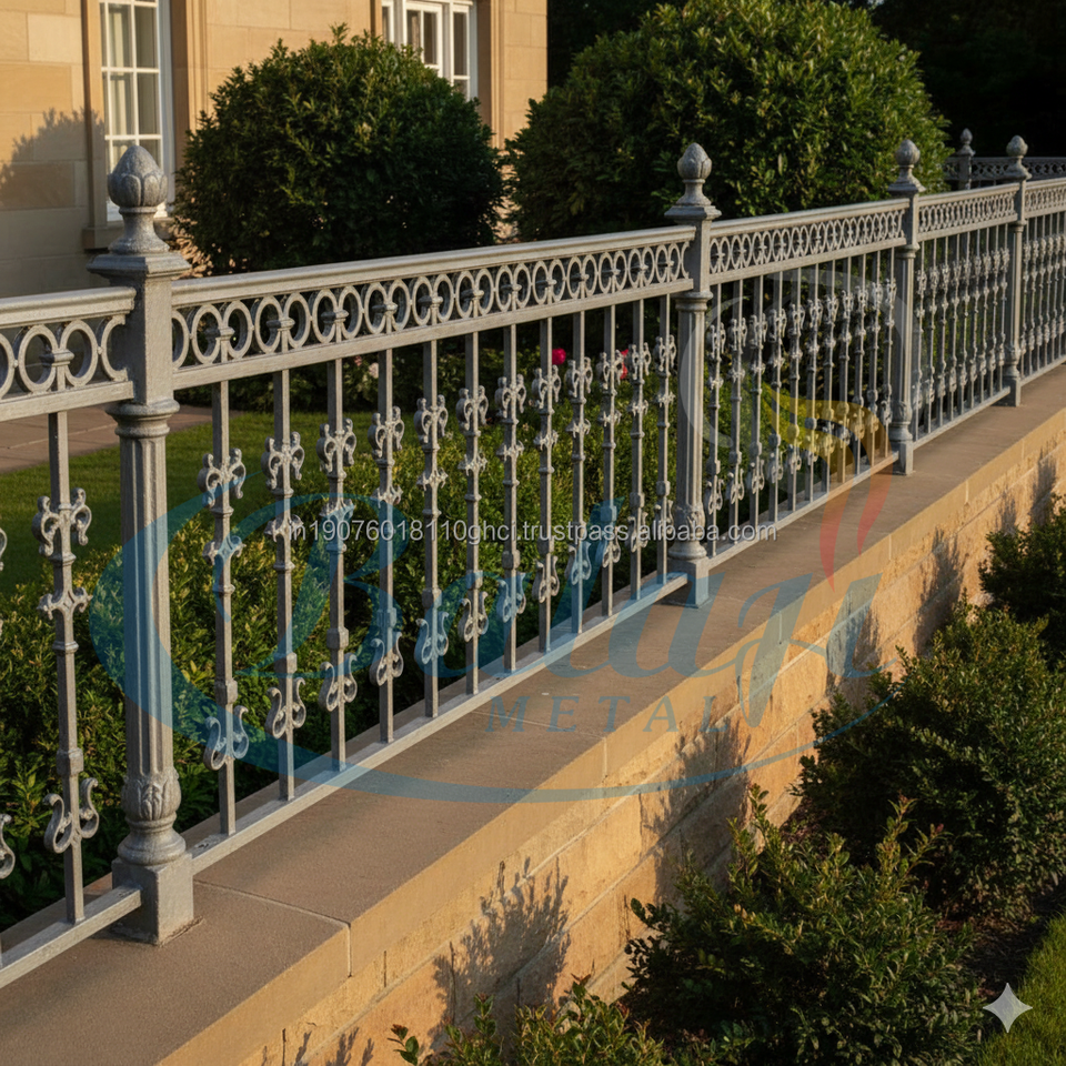 Balustrade de balcon moderne en acier forgé, paniers à fleurs, écologique, hauteur 53 pouces, largeur 6,5 pouces, motif ornemental galvanisé