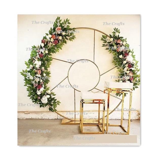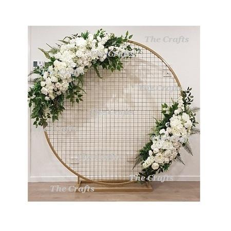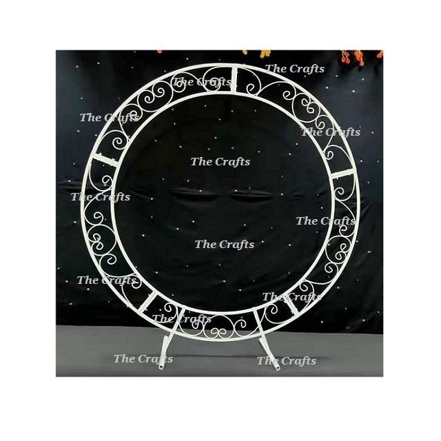 Fer forgé blanc couleur fleur décoration toile de fond à la main forme ronde toile de fond pour l'utilisation de décoration de mariage
