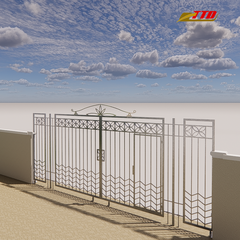 Wrought iron garden gate with ornamental scrollwork and strong metal hinges for secure outdoor access points
