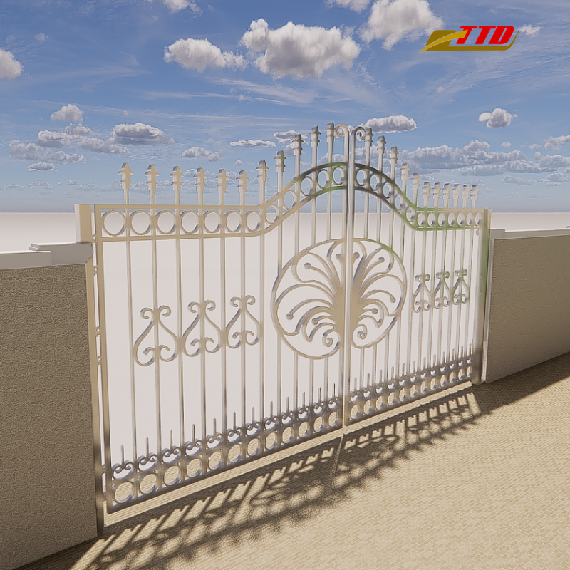 Wrought iron gate with automation ready frame and weather resistant coating Vietnam supplier of iron gate systems