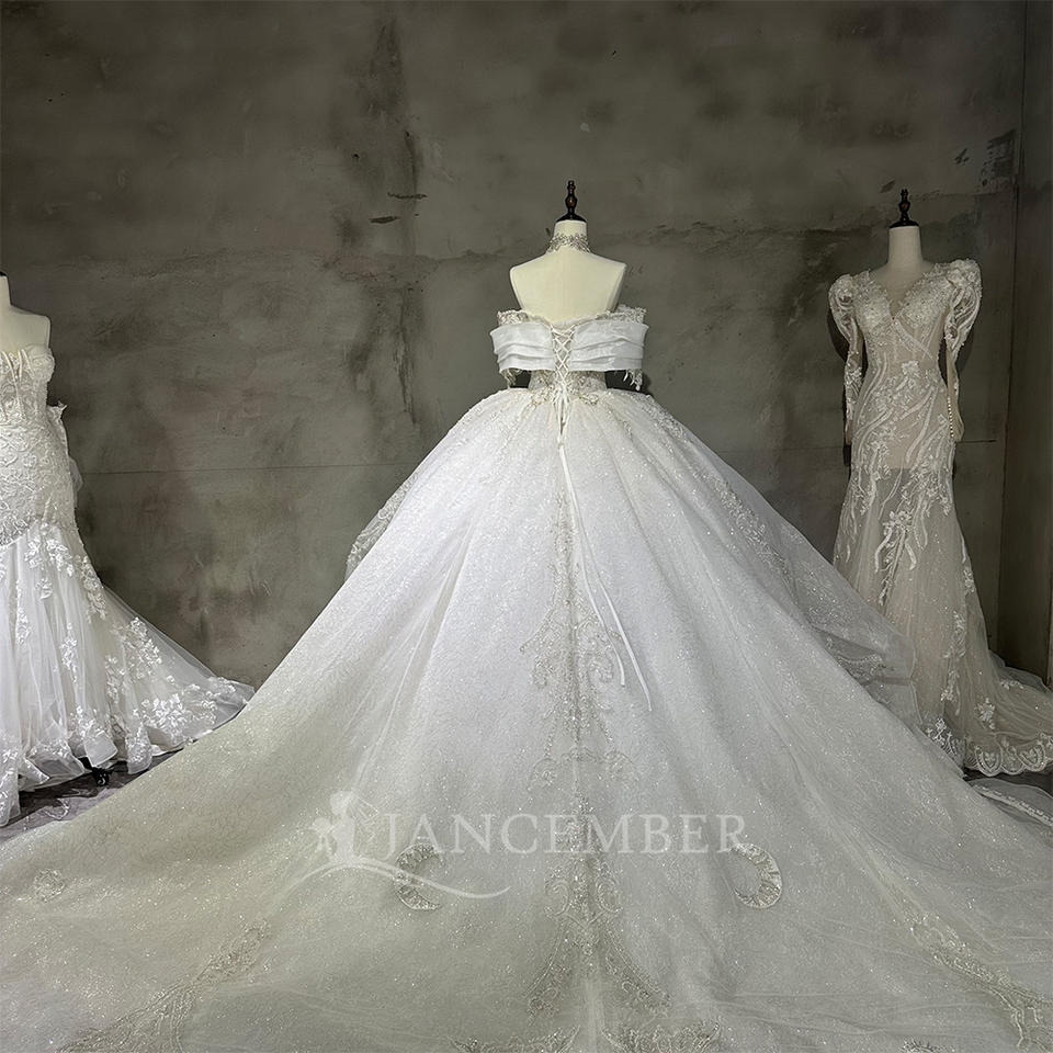 Robe de mariée Jancember Wx102 style princesse coréenne, jupe bouffante, coupe ajustée, ornée de diamants brillants, pour mariées élégantes