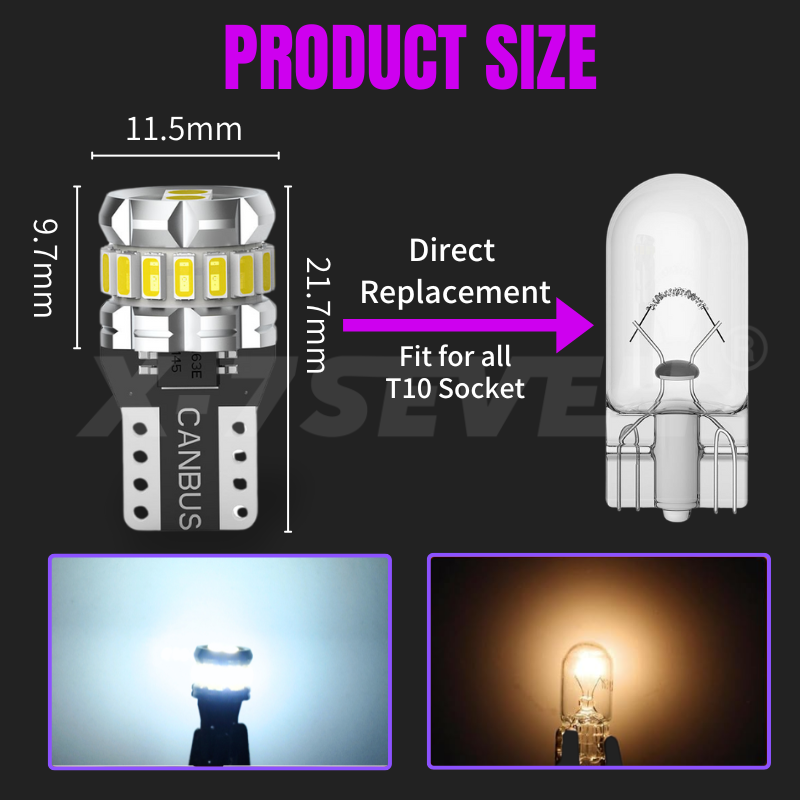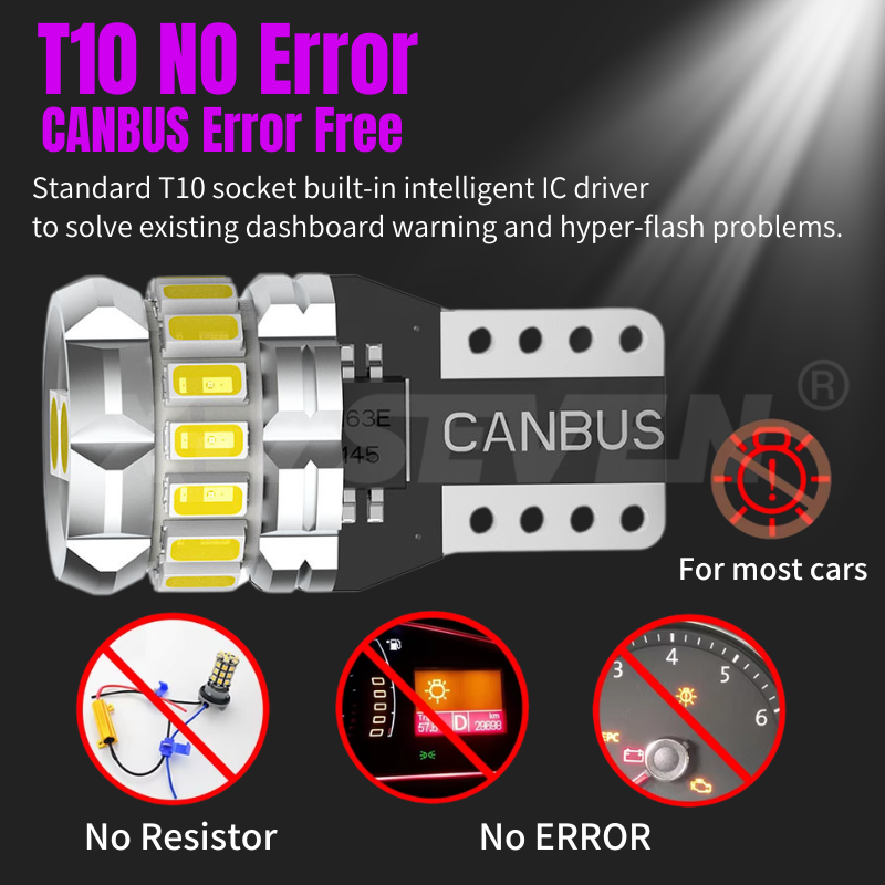 X-7SEVEN T10 LED Ampoules Super Lumineux W5W WY5W 3014 SMD 400Lm Canbus Feux De Stationnement Auto Dôme Lampe Blanc Rouge Ambre Glace Bleu