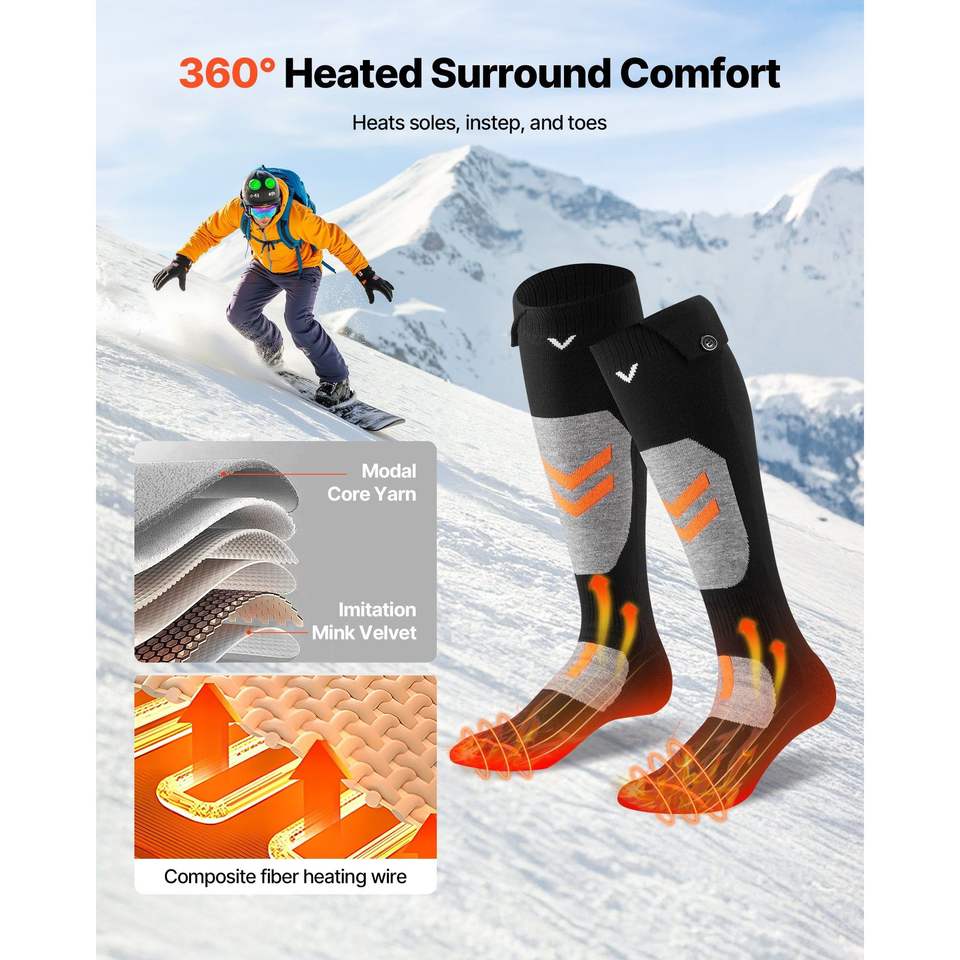 Chaussettes chauffantes taille XL pour sports de plein air, batterie rechargeable 5000 mAh, 4 niveaux de chauffage avec contrôle électrique par application