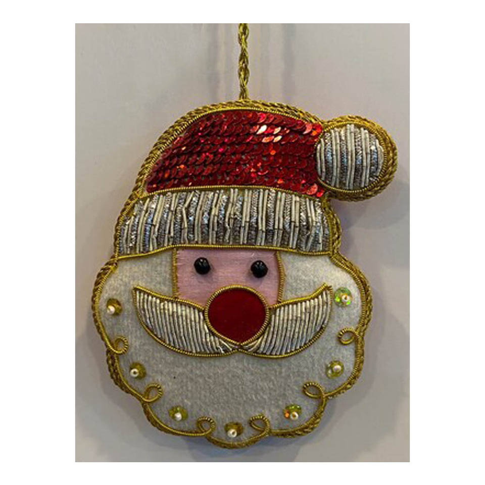 Ornements de Noël en forme de tête de Père Noël brodés à la main X - Mas Zari