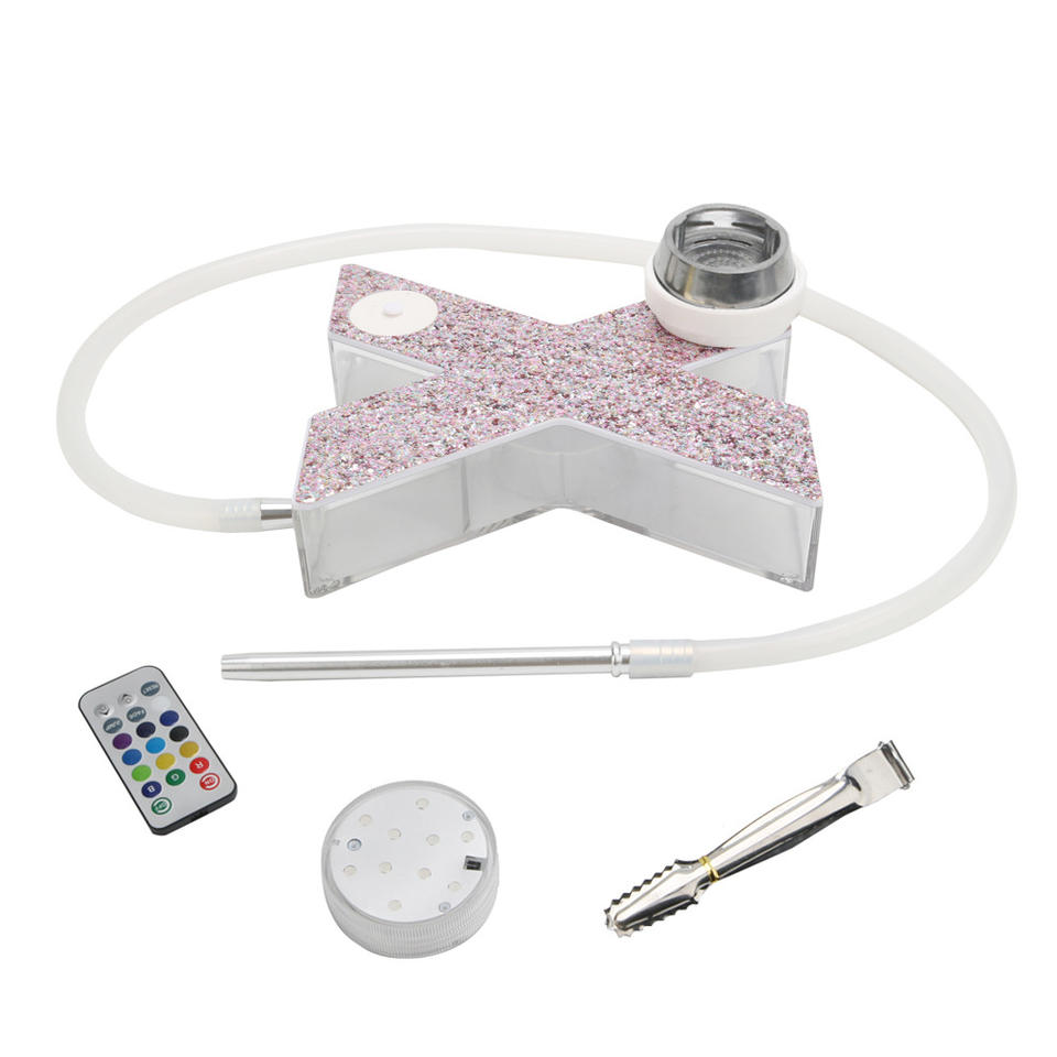 Chicha manuelle en forme de X avec lumière LED, vente en gros, chicha arabe en acrylique, nouveau design créatif, ensemble de chicha pour bar