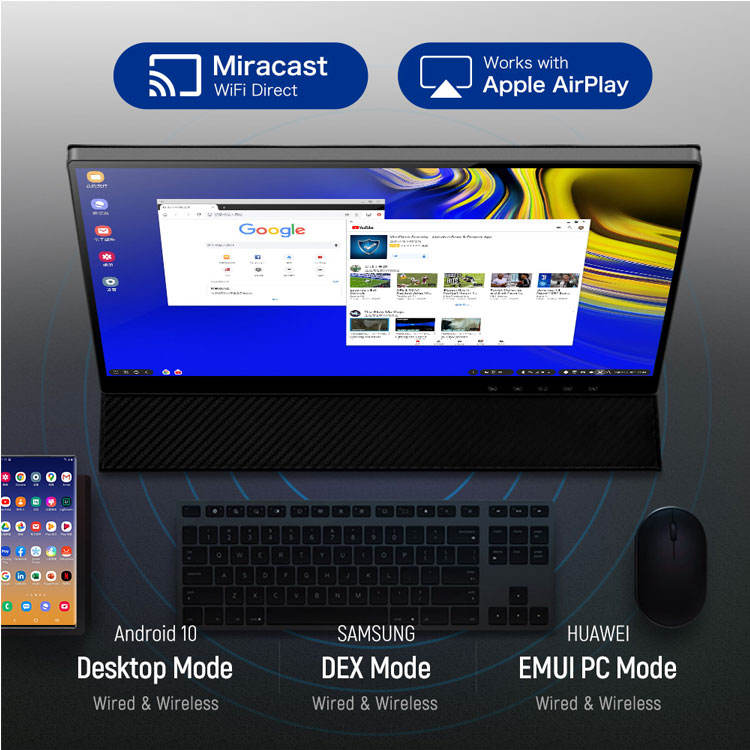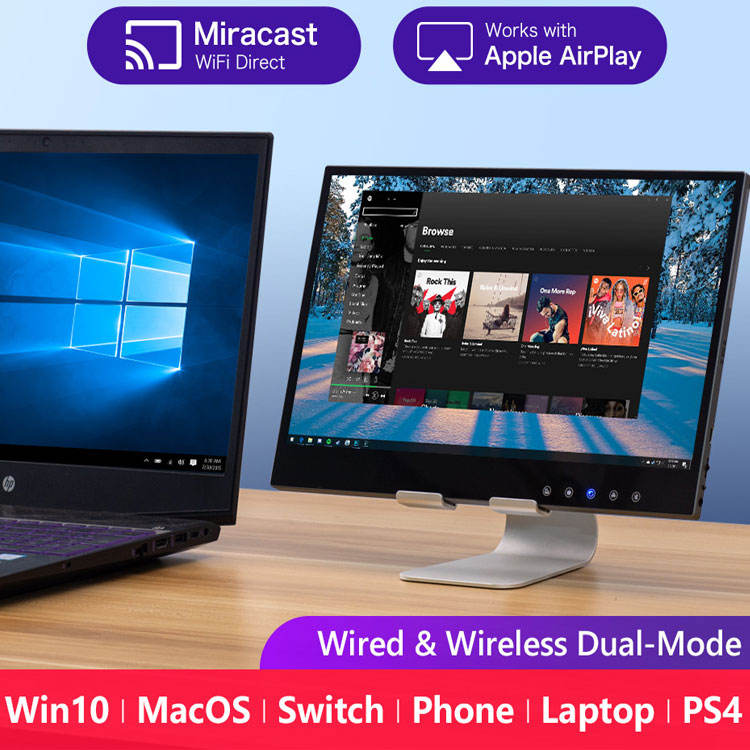 Écran portable sans fil 13,3 pouces avec écran tactile FHD, batterie, Miracast, Wifi Direct, Airplay, compatible X-box One, PS4, PS5, IPS