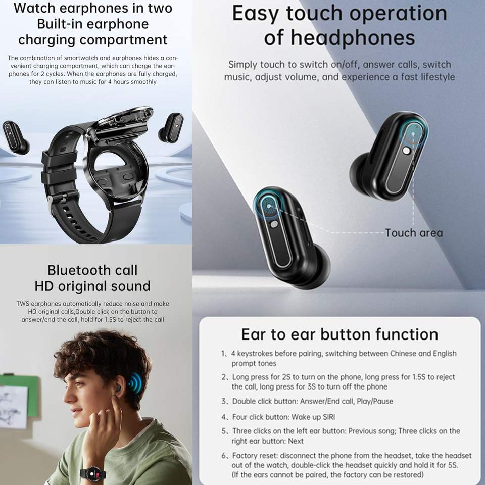 Smart watch with earphone earbuds 2 in 1 business sports watch