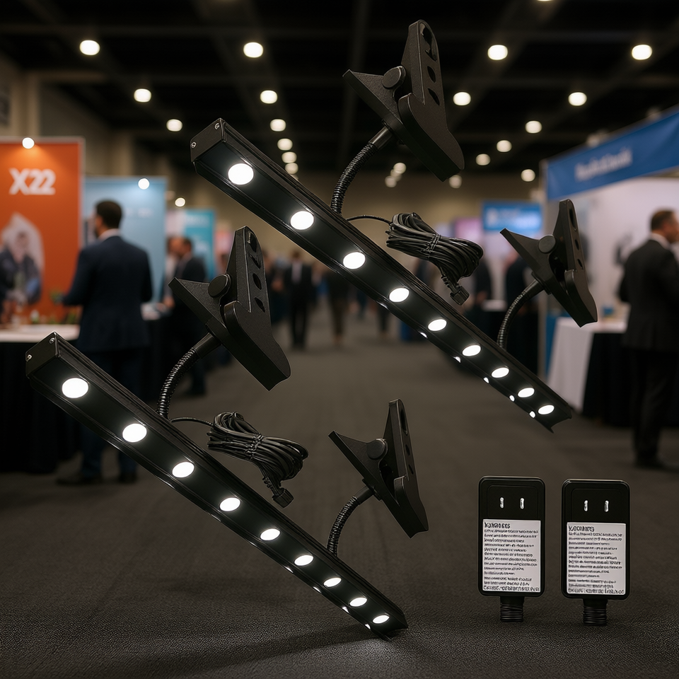 Support de bannière lumineuse X2 LED, monté sur poteau noir, résistant aux intempéries, pour bannières de salons professionnels