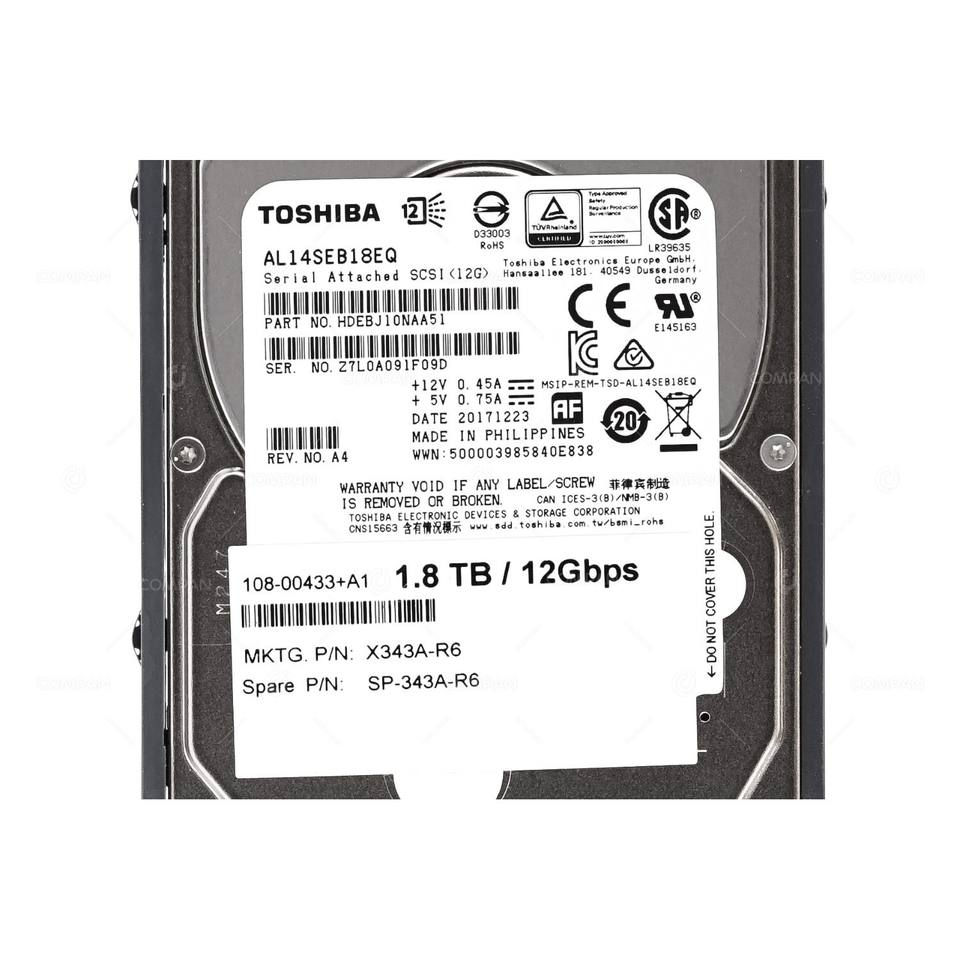 Disque dur SAS 2,5 SFF X343A-R6 NetApp 1,8 To 10 000 tr/min 12 G pour les appareils de stockage DS2246 DS224C FAS2650 FAS2750