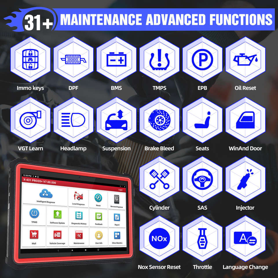 Product Feature:Full System Diagnosis 30+ Reset Functions
