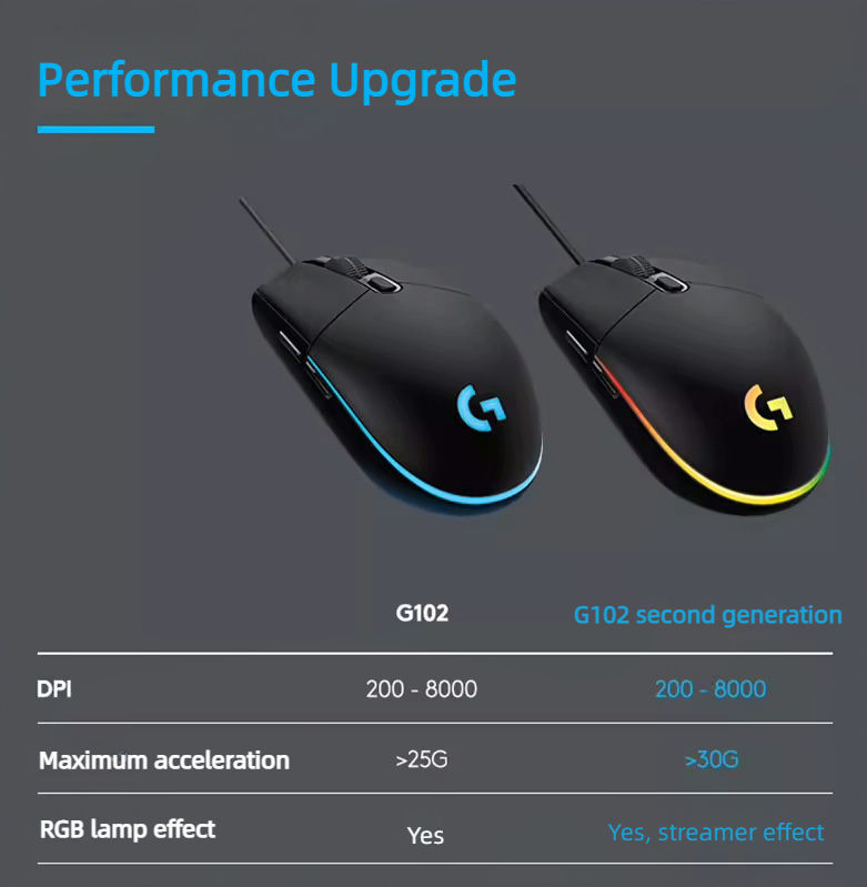 X731-2 nouvelle souris de jeu Logitech G102 originale Lightsync/prodige G203 souris d'ordinateur optique 8000DPI 6 boutons souris filaire RVB