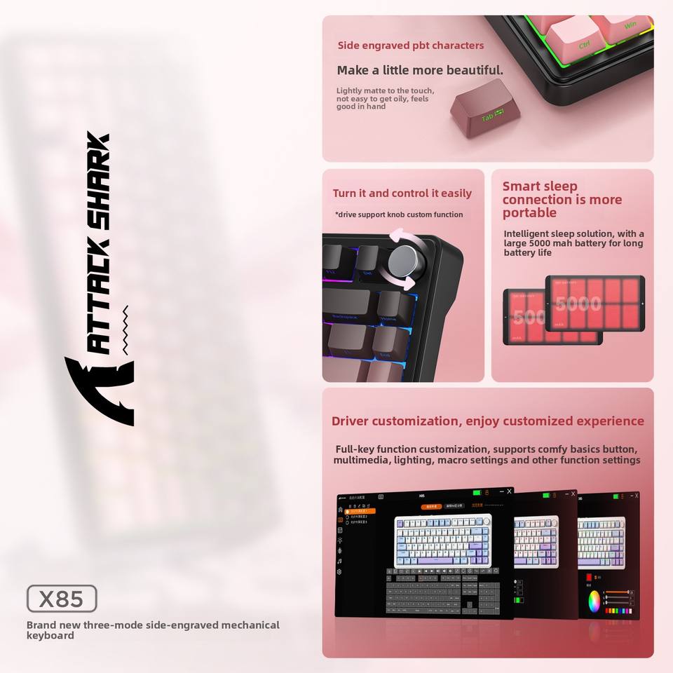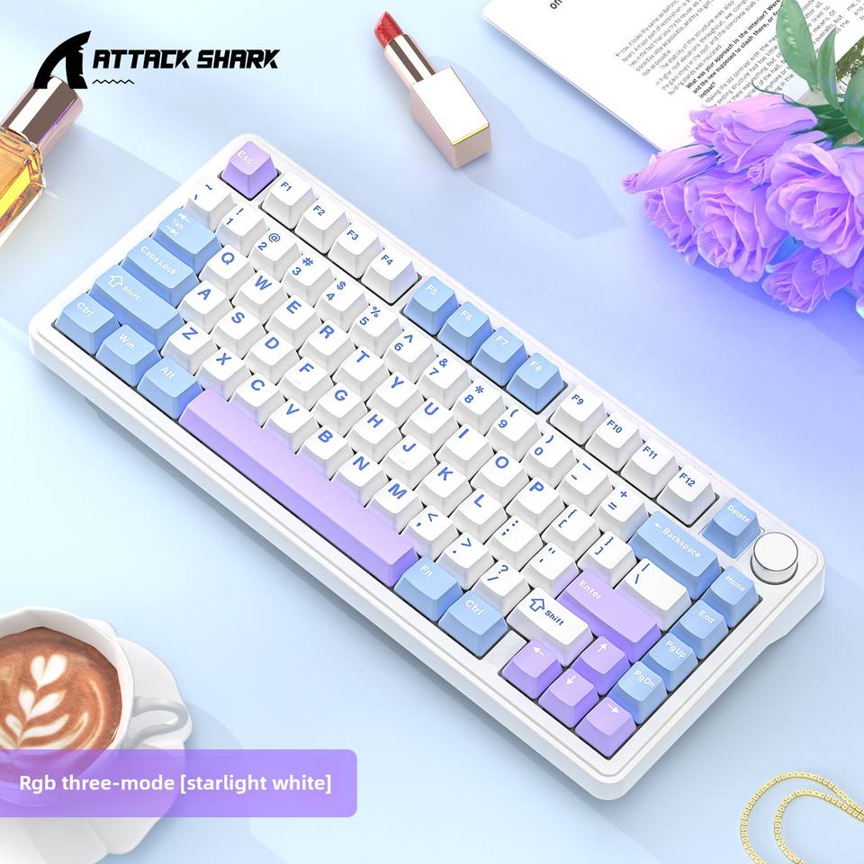 Clavier de jeu X85 RGB éclairé, trois modes sans fil, personnalisable, style mécanique, touches imprimées sur le côté, claviers interchangeables à chaud
