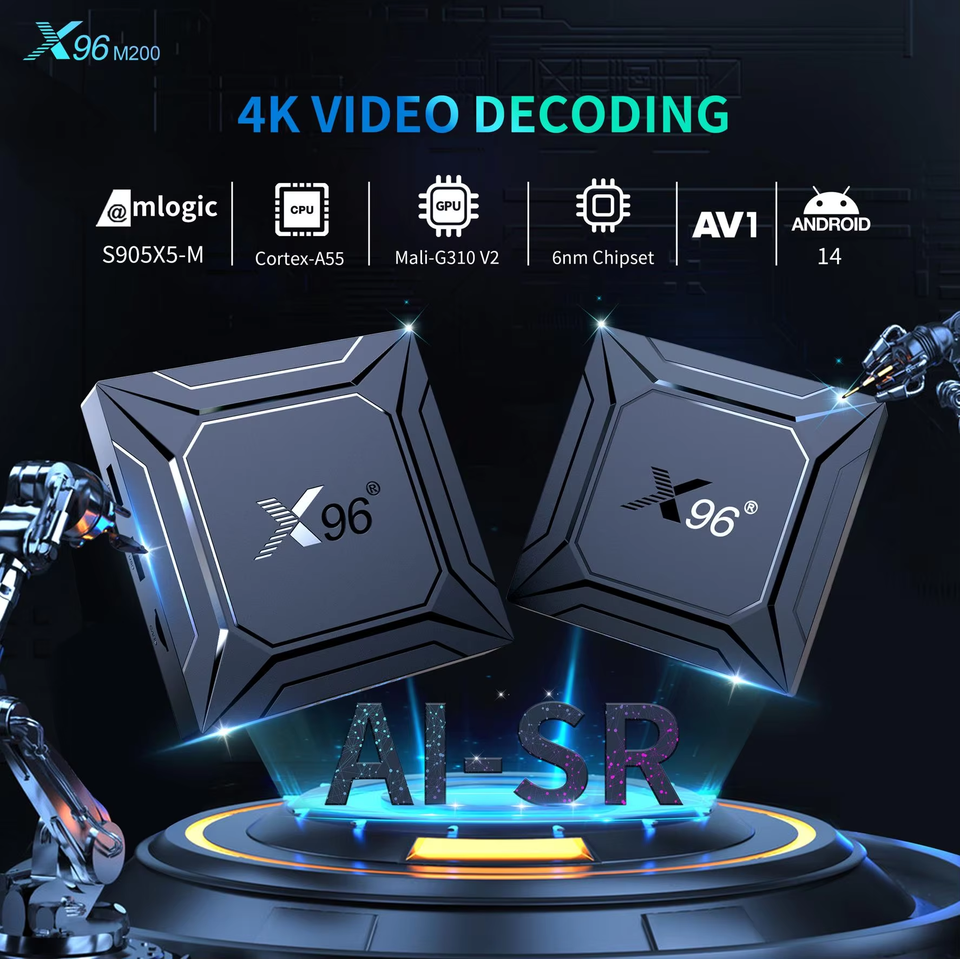 X96 M200 Amlogic Tv Box A55 Wifi 6 BT5.0 HDR10 + Mali G310 Décodeur sans fil double bande 1000m Définition Android Smart TV Box