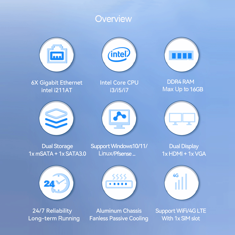 Network:6 * Intel I211 network card, support network wake-up, network card