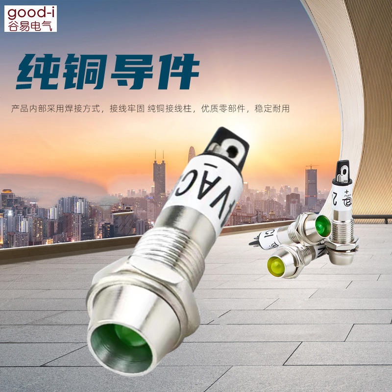 XD8-1 Miniature 8mm Indicateur de signal d'alimentation en métal LED Source lumineuse Rouge Vert & Jaune Indicateurs 12V 24V 220V Découpe pour taille 8mm