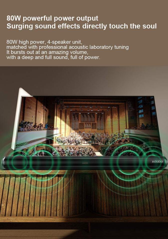 Barre de son XDOBO Home 1978 II 80W Bluetooth avec 4 haut-parleurs pleine bande, 1 ARC, USB, coaxial, optique, système audio sans fil