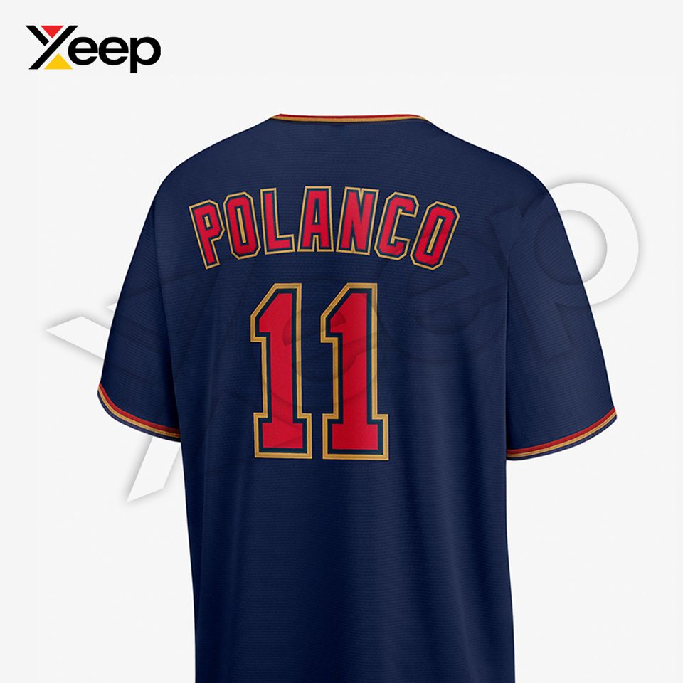 Maillot de baseball personnalisé pour homme en polyester XEEP XC-BBU-26, haute qualité, service OEM, impression par transfert thermique, manches courtes, respirant