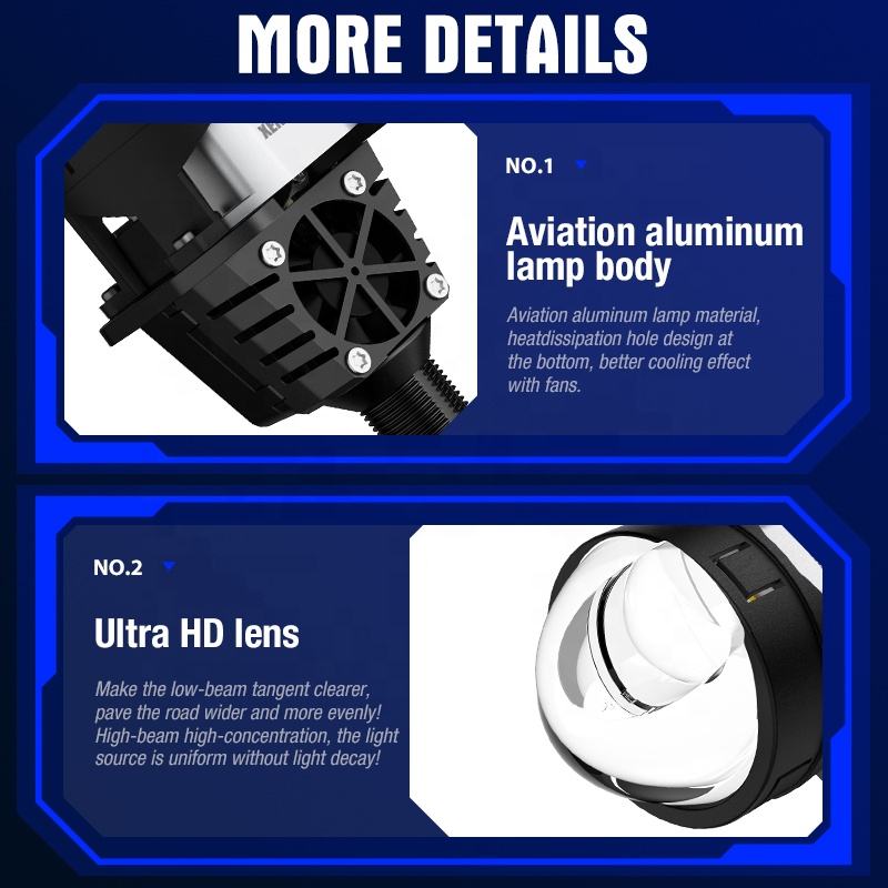 XENPLUS Logo Personnalisé Bi Projecteur LP33 2.5 Pouces 120W 30000LM Super Lumineux Bi LED Laser Projecteur