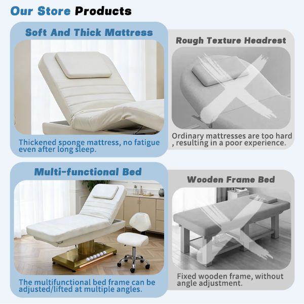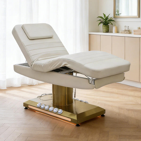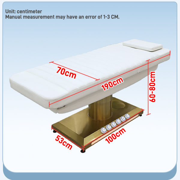 XFMC Acier Inoxydable Base Or Portable Lash Spa Table De Massage Électrique Spa Professionnel Lit Cosmétique avec Fond LED Lumières